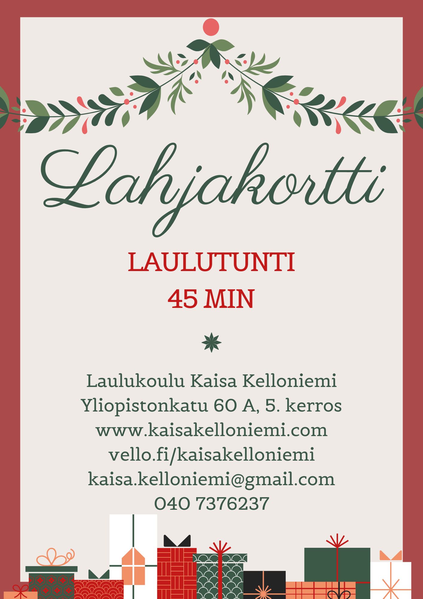 45 minuutin laulutunti lahjaksi laulajalle tai laulamisesta kiinnostuneelle, kuorolaulajalle, karaokeharrastajalle, laulamisesta haaveilevalle!